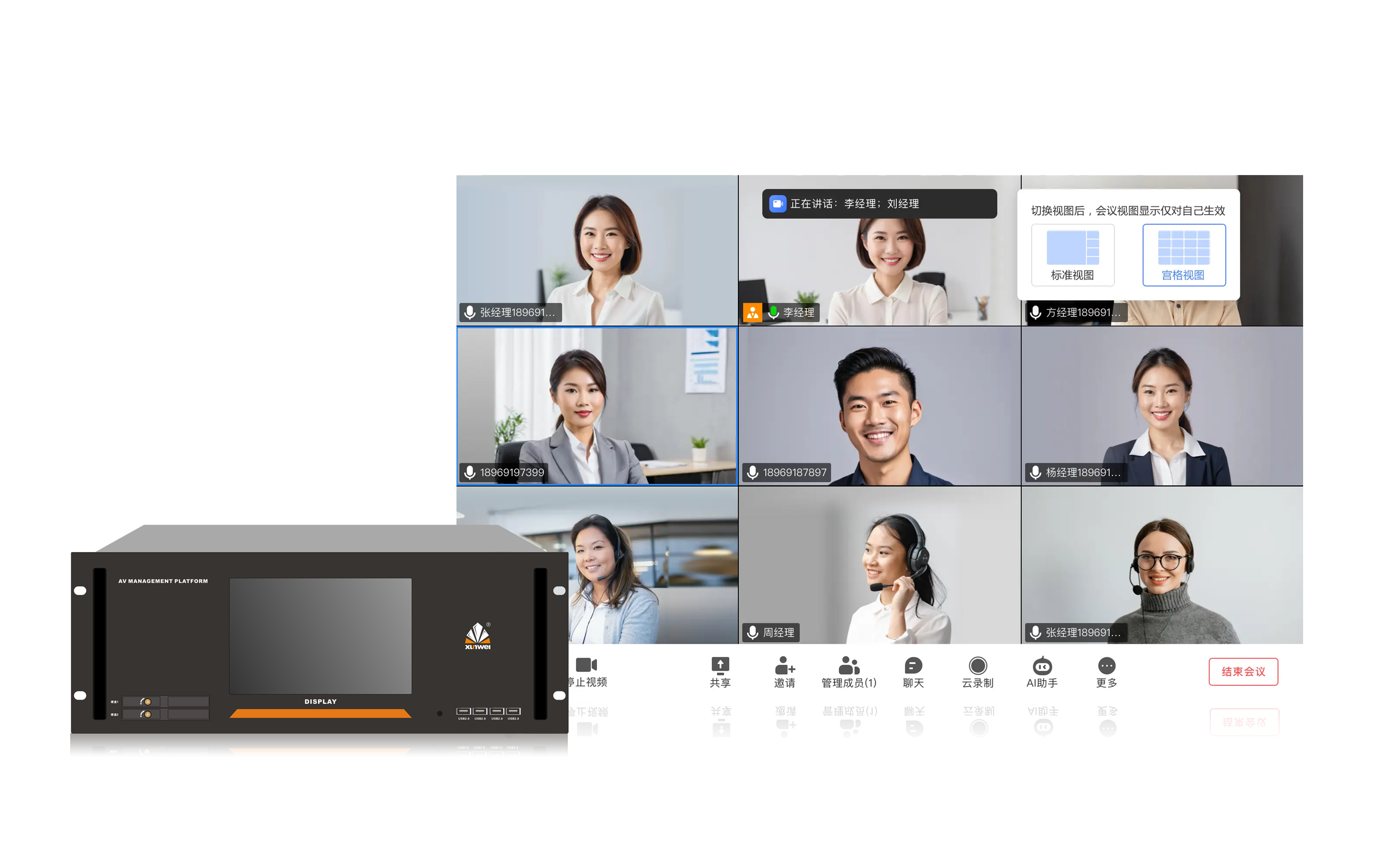 集视频会议、视频录播、中控管理、AI应用、可视化等多种强大功能于一体,采用可视化软件控制,为企业打造高效、便捷、智能的会议体验