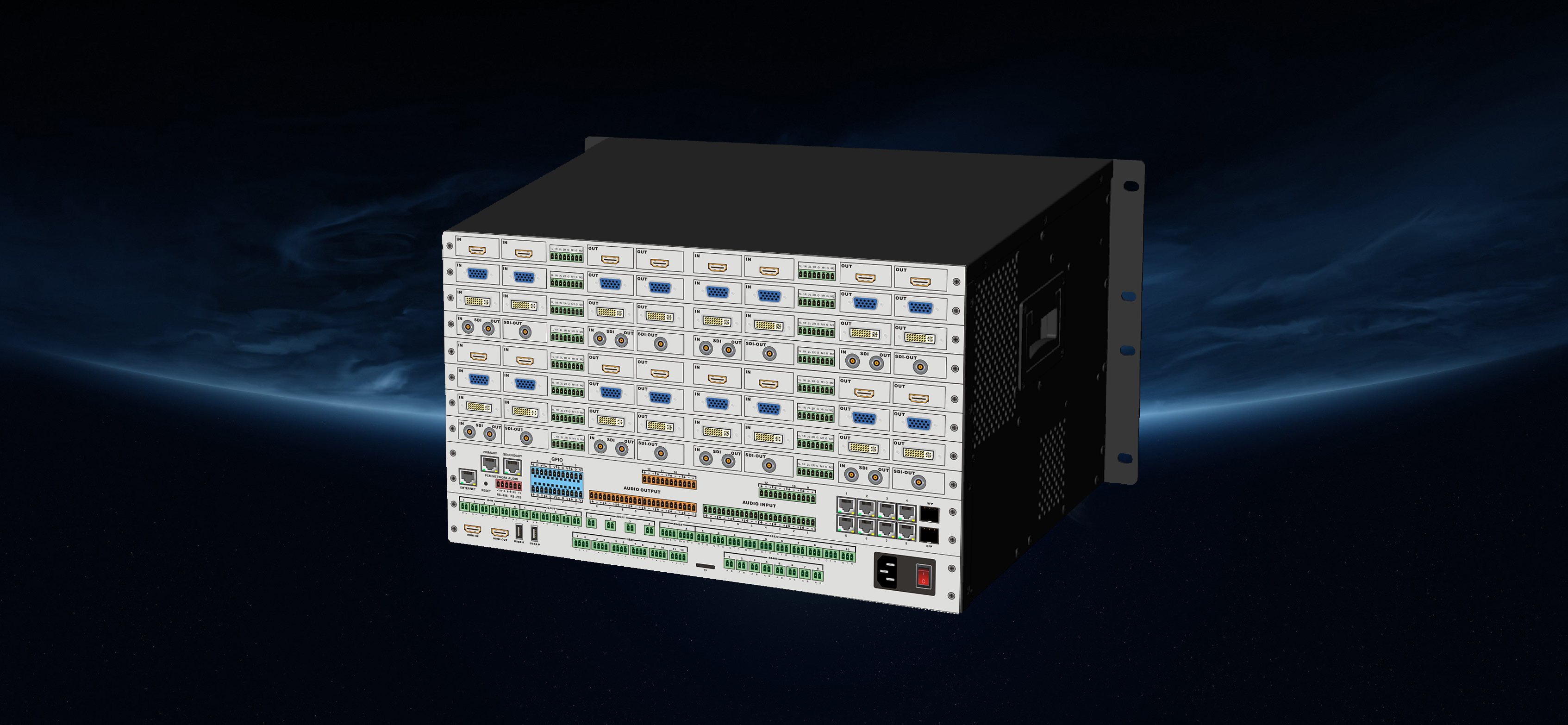 采用高可用机箱作为"基础平台",支持热插拔。所有功能,包括视频输入/输出、中控、录播等,均以板卡形式提供,将五大功能模块集成于单台设备中。