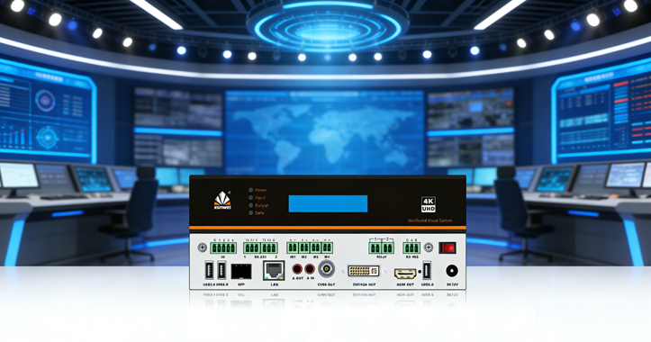 讯维AI智滤显控系统配备12组工业级标准化接口,覆盖视频、音频、网络、通讯、电源、升级等全功能类型,兼容性极强,可无缝对接各类播控