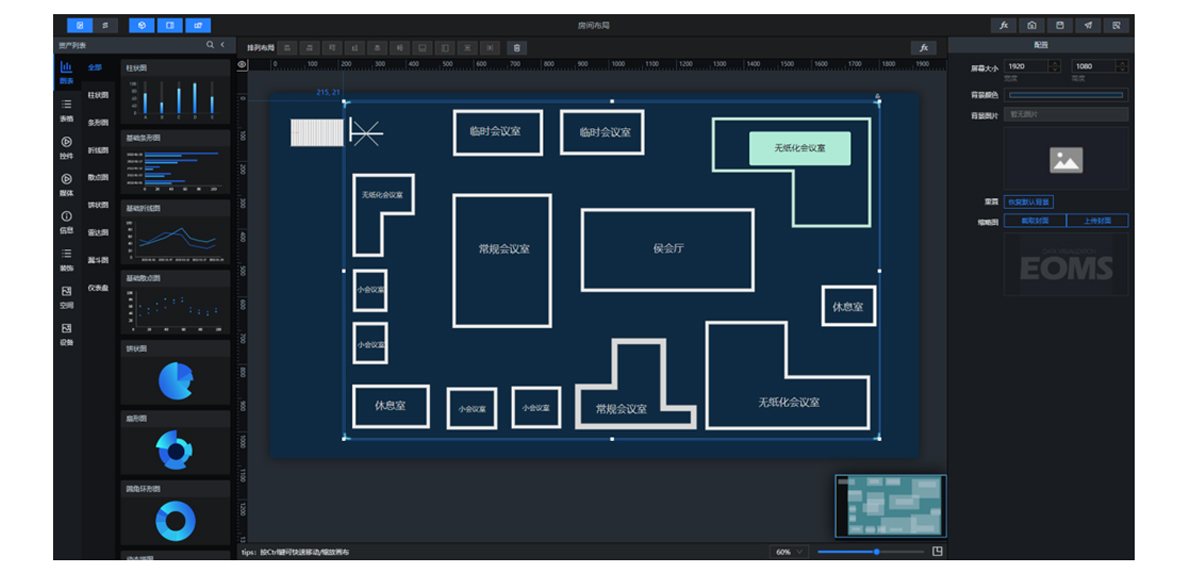 建成后的会议室能满足普通会议、多媒体会议、学术交流、文娱活动等不同使用功能要求。运用可视化手段呈现空间资源的分配和占用状态。通过感应器、业务系统进行数据交互,实时监测各类型空间的使用情况,在系统中可跨平台掌握各区域的当前状态。