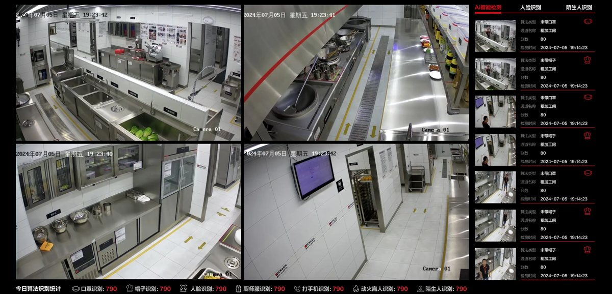 借助AI视觉识别技术,精准监管厨房的行为规范及环境卫生,守护食品安全,推动智慧食堂的建设进程。