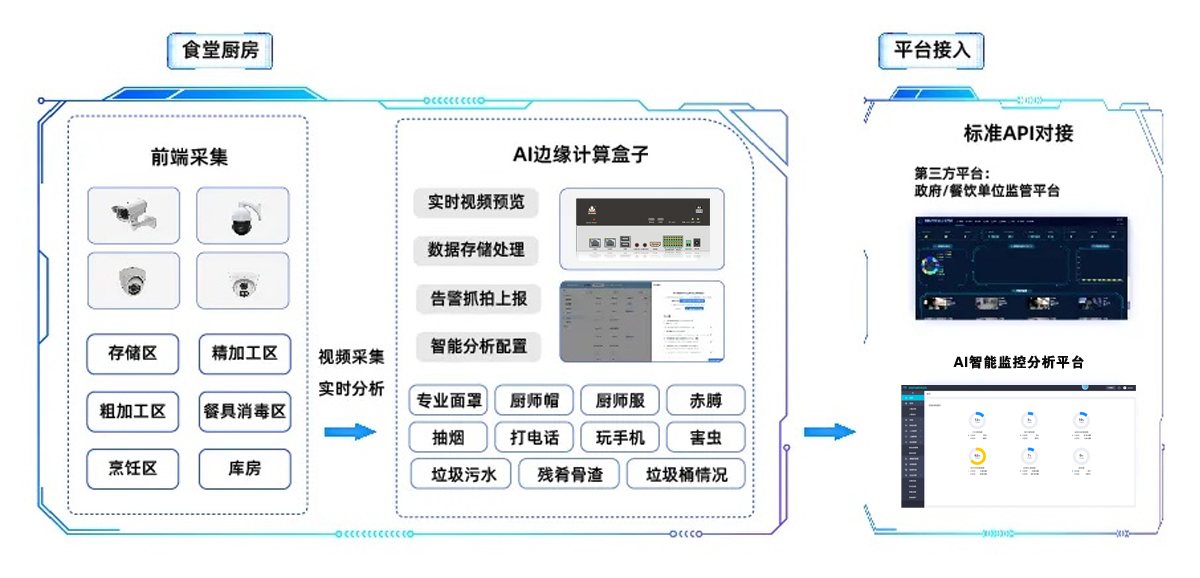随着人工智能时代的到来,社会经济的不断发展,人民生活水平的显著提高,对食品健康安全提出了新要求。国家及各级政府在"十四五"规划中指出,强化食品安全管理、保障消费者的健康权益、通过技术手段实现智慧监管是刻不容缓的任务。为此,各地政府正加速推进"明厨亮灶"的建设步伐,以"AI人工智能+明厨亮灶"的智慧监管新模式,为政府监管餐饮服务单位提供了有力支撑。