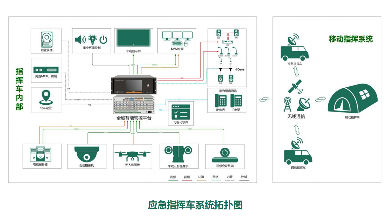 在应急指挥场景中,应急指挥车作为移动指挥中枢,需快速响应突发事件,实现跨区域、多部门协同指挥。然而,传统应急指挥车存在设备分散、空间占用大、操作复杂、兼容性差、信息传输不稳定等问题,导致系统部署效率低、运维成本高,难以满足现代化应急指挥的高效性、机动性和安全性需求。