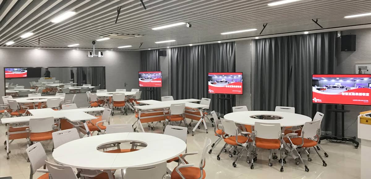 ◆常态化录播教室。通过该教室的搭建,能智能实现课堂实况自动拍摄的功能,真实完整还原教师讲解、学生听课、提问等各个环节的授课情况。常态化教室构建简单,能将日常的教师授课高效优质录制。