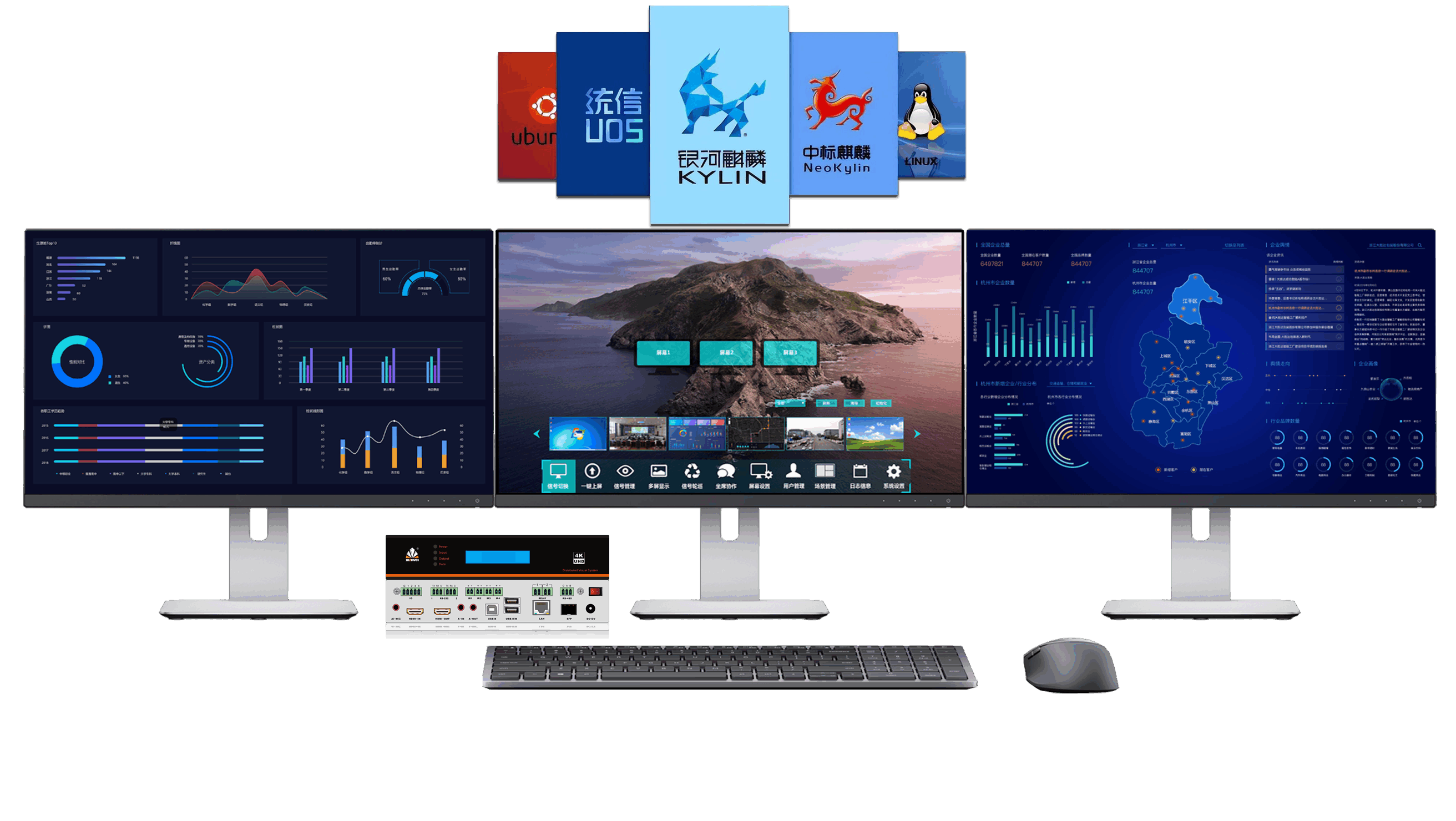 硬件采用国产化芯片及元器件,软件兼容麒麟等各种国产操作系统,具备自主知识产权,使用更加安全放心。可视化OSD菜单
